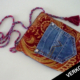 Afmetingen: breed 12 cm, hoog 6,5 cm. Materiaal: hout en grobline stof